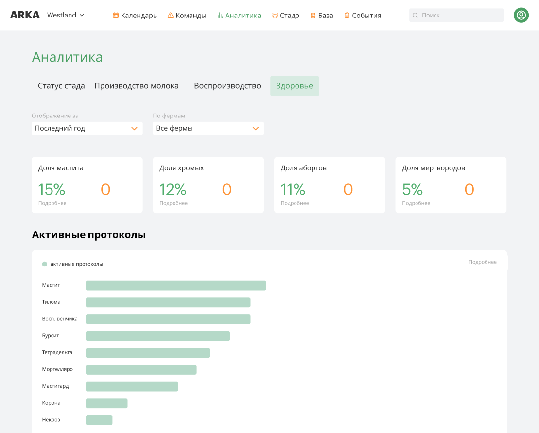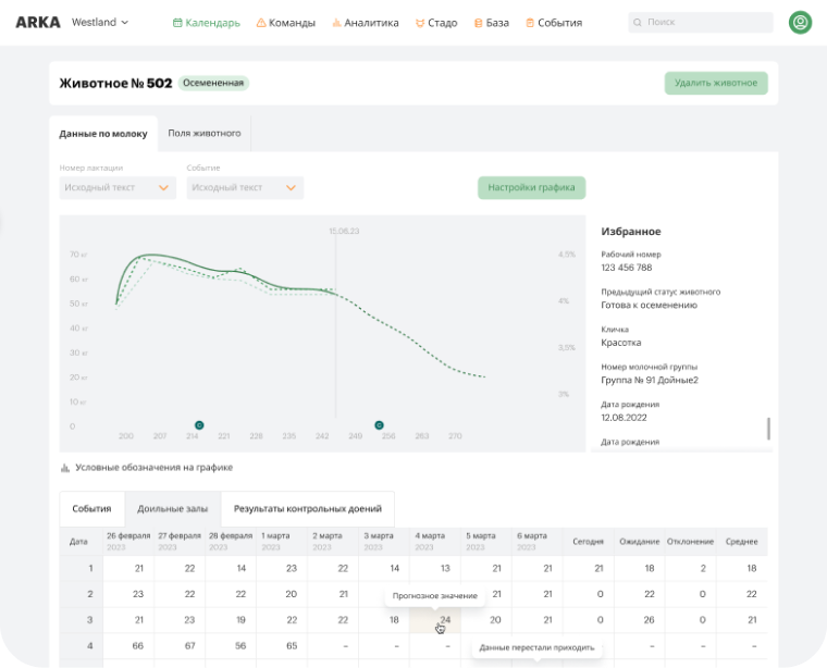 Наш искусственный интеллект умеет на основе данных чётко прогнозировать будущее фермы: сколько вам ждать молока, телят и к каким болезням готовиться